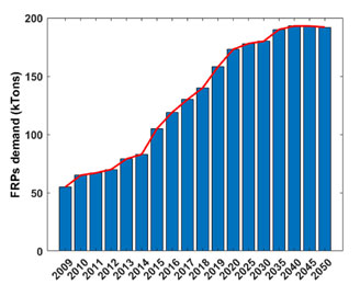 The growing use of FRPs in the construction, marine and transportation industries implies larger and increasing amounts of FRP waste, produced at different stages of their life cycle.